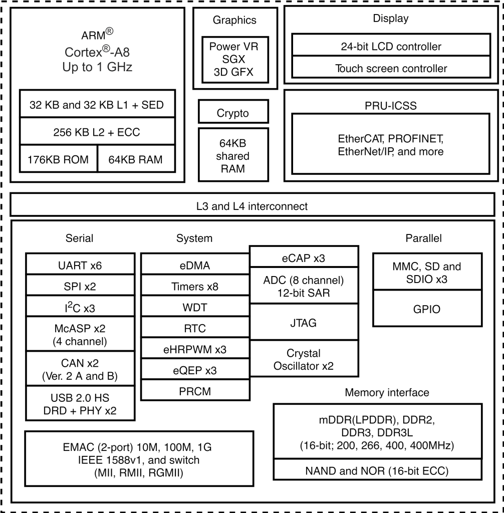 Như ảnh ở trên ta có cấu trúc AM3359 SoC, phần chip chính gồm