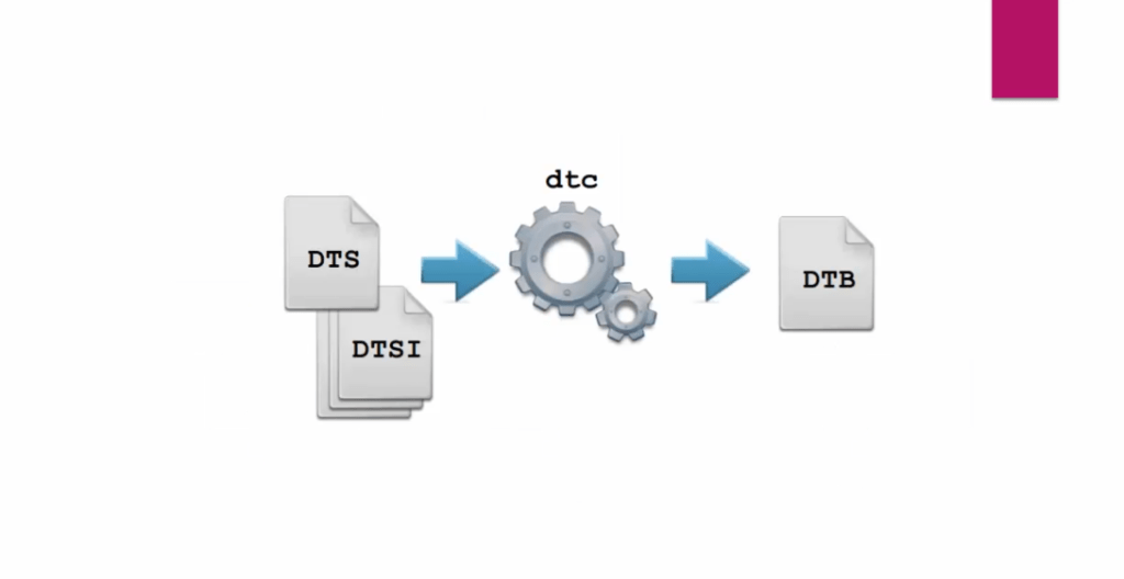 DTS (Device Tree Source) cùng với DTSI(Device Tree Source Include) sau đó qua device tree compiler để thành DTB (Device Tree Blob/Binary)