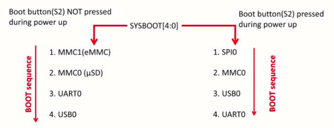 Trên Beaglebone Black có rất nhiều lựa chọn cho nguồn boot. Thứ tự ưu tiên sẽ tùy vào việc Phím S2 được ấn lúc khởi động hay không