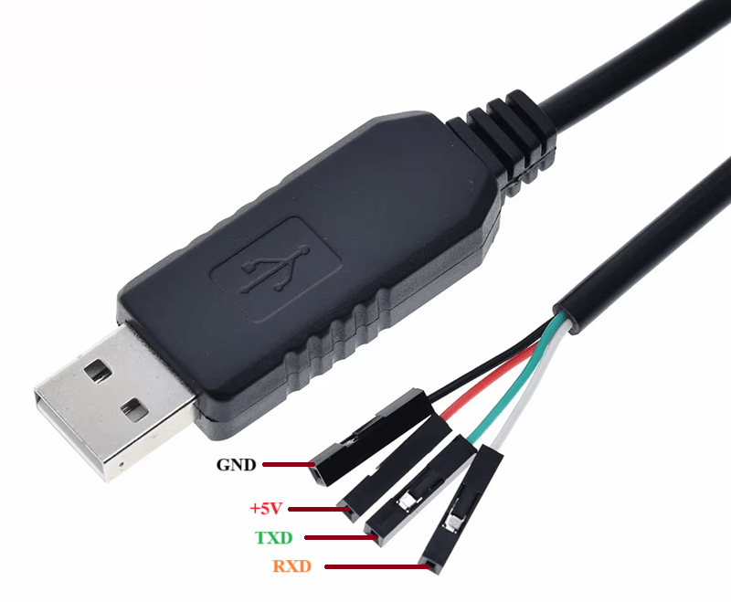 Ở đây mình dùng loại PL2303. Lưu ý khi cắm dây UART giữa 2 thiết bị thì các bạn phải cắm chéo, TX thiết bị A với RX thiết bị B, RX thiết bị A với TX thiết bị B