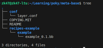 Okay Vậy là ta đã tạo ra được được 2 meta-layer có chứa bbappend cho recipe example với base trong meta-base (tên recipe sẽ là trước “_”, 0.1 là version. Nếu muốn bbappend áp dụng cho mọi version ta cần đặt tên nó là example_%.bbappend)