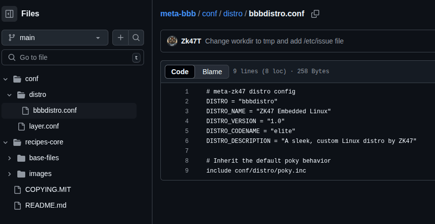 Lưu ý rằng giá trị biến DISTRO phải giống với tên file conf (bbbdistro)