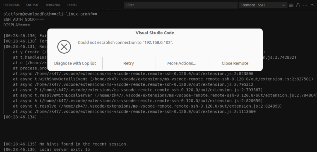 Tuy nhiên, VS code gặp khó khăn khi mở SSH cho giao diện người dùng vì trên image của chúng ta thiếu những package VS Code cần