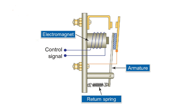 - Dùng rơ-le điện (chứ chưa phải transistor). Dùng nam châm điện để hút tiếp điểm, tạo thành logic 0/1, thông dòng/Không thông dòng